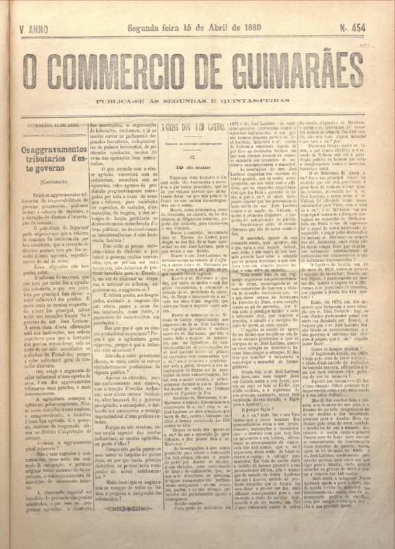 Comércio de Guimarães, nº 454, de 15/04/1889