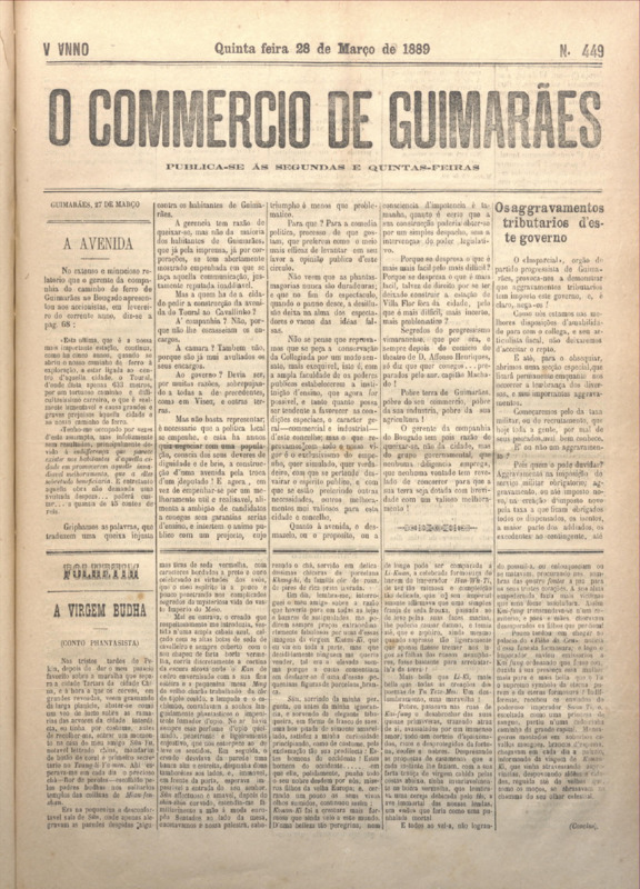 Comércio de Guimarães, nº 449, de 28/03/1889