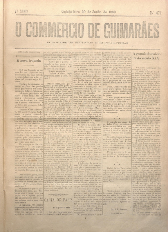 Comércio de Guimarães, nº 471, de 20/06/1889
