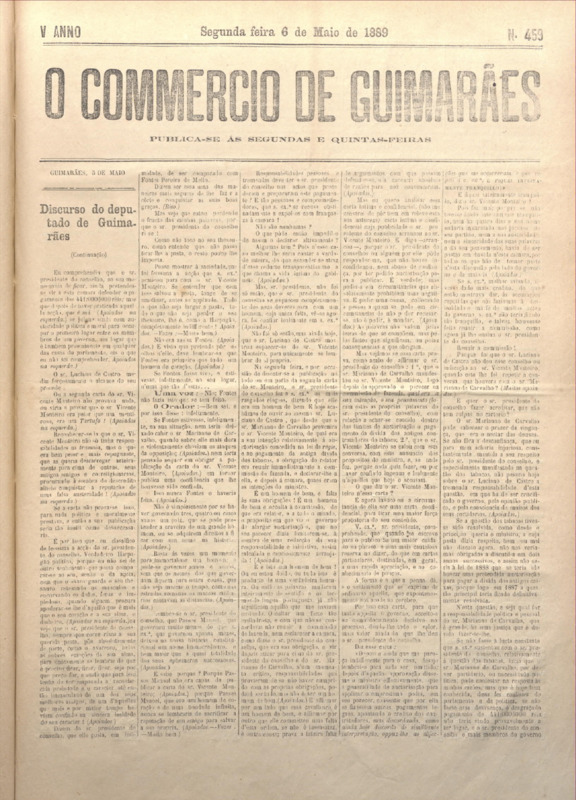 Comércio de Guimarães, nº 459, de 06/05/1889