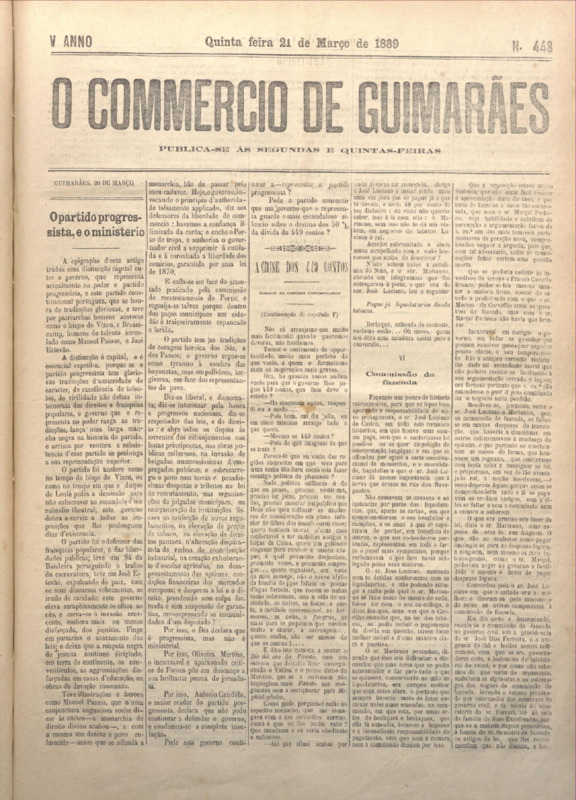 Comércio de Guimarães, nº 448, de 21/03/1889