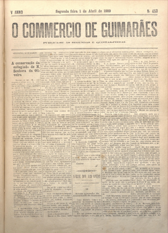 Comércio de Guimarães, nº 450, de 01/04/1889