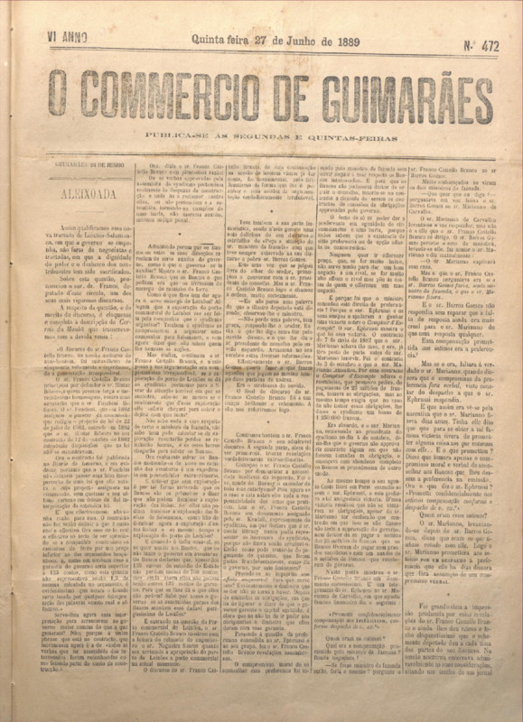 Comércio de Guimarães, nº 472, de 27/06/1889