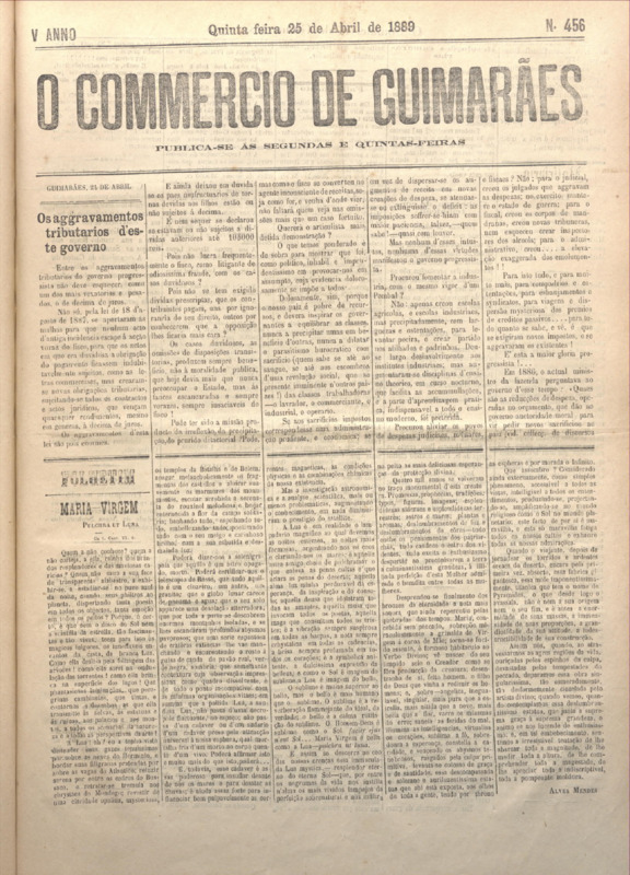 Comércio de Guimarães, nº 456, de 25/04/1889
