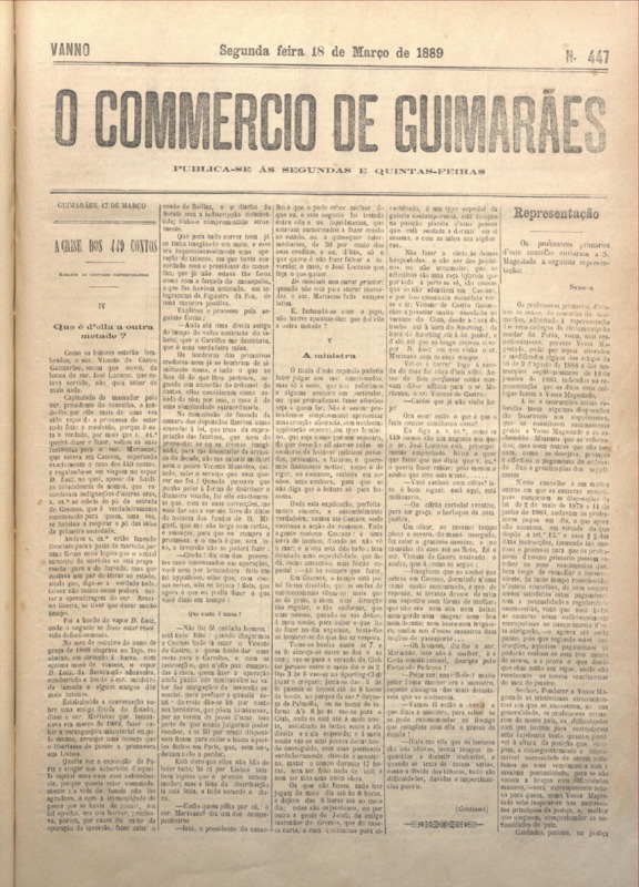 Comércio de Guimarães, nº 447, de 18/03/1889