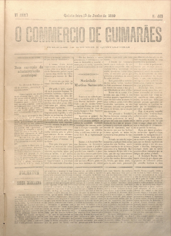 Comércio de Guimarães, nº 469, de 13/06/1889