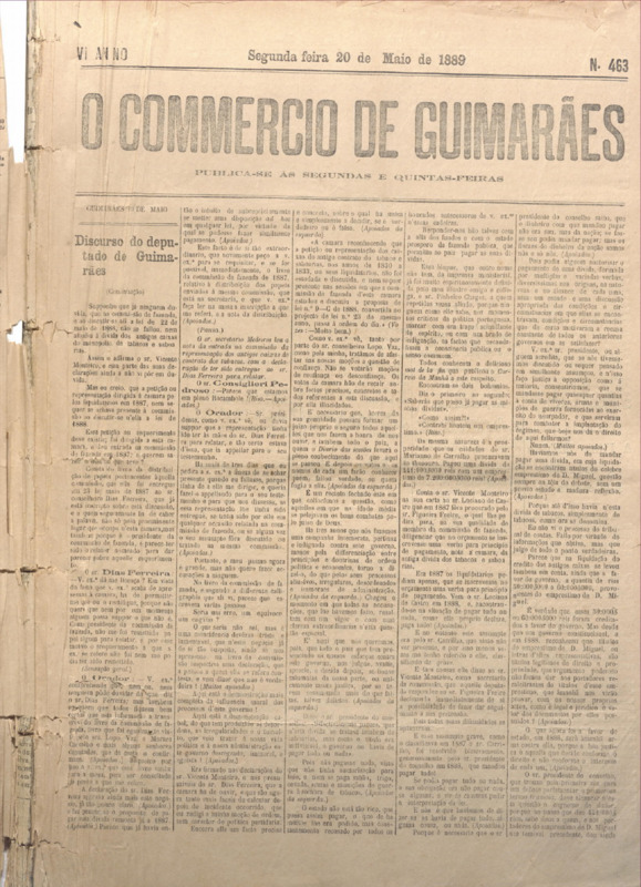 Comércio de Guimarães, nº 463, de 20/05/1889