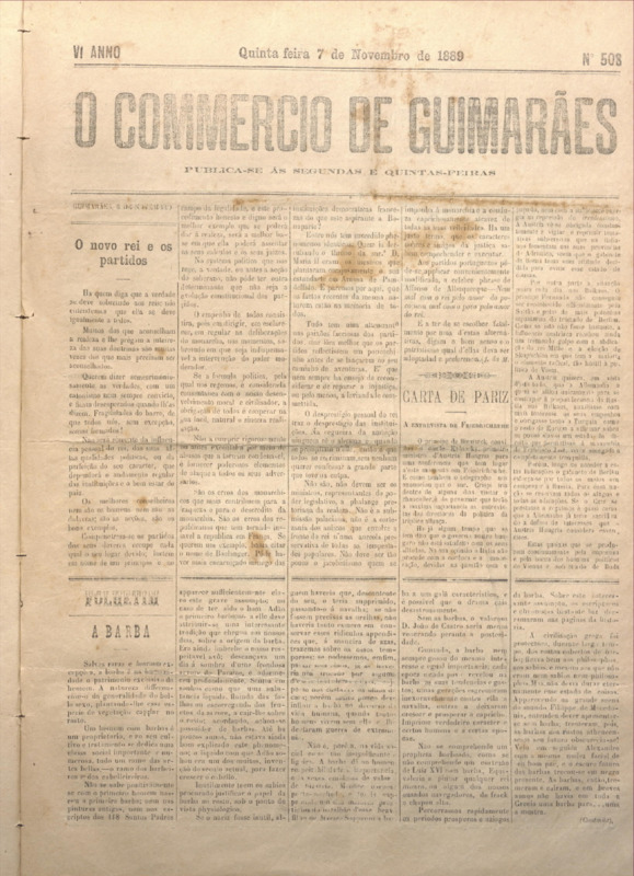 Comércio de Guimarães, nº 508, de 07/11/1889