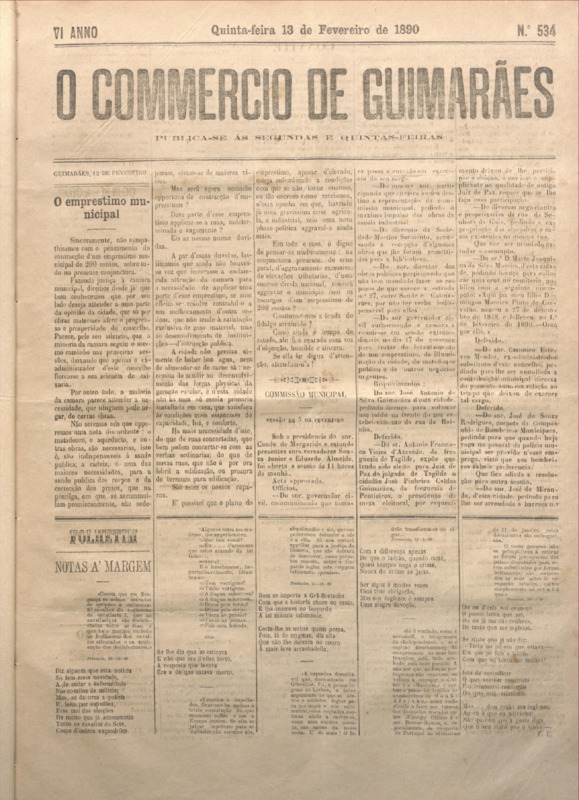 Comércio de Guimarães, nº 534, de 13/02/1890