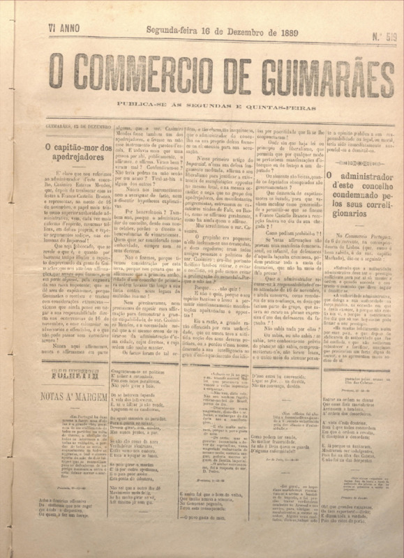 Comércio de Guimarães, nº 519, de 16/12/1889