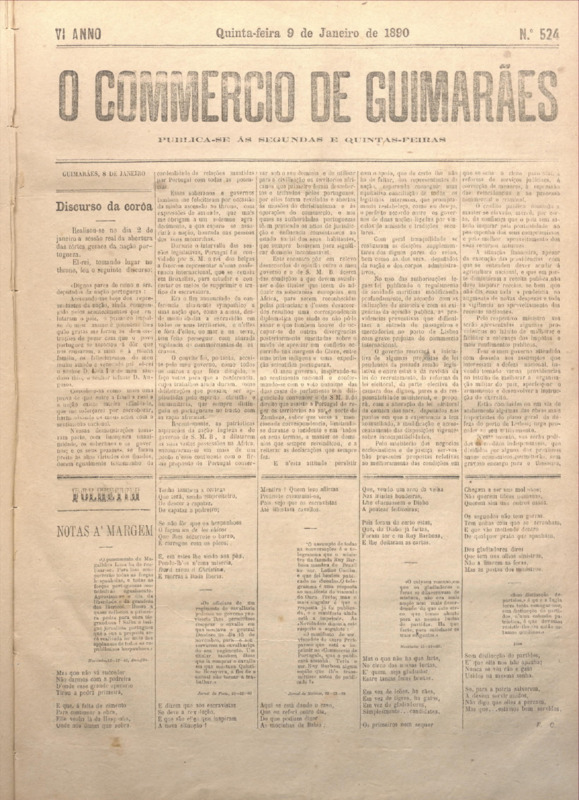 Comércio de Guimarães, nº 524, de 09/01/1890
