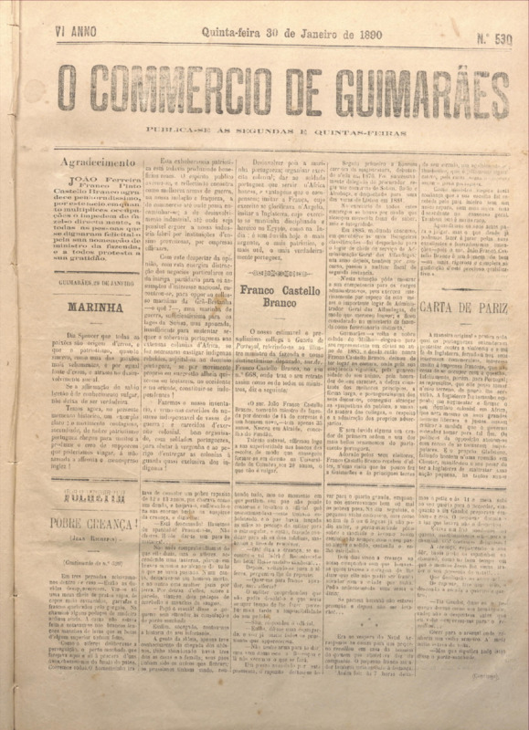 Comércio de Guimarães, nº 530, de 30/01/1890