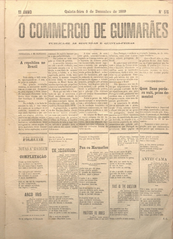 Comércio de Guimarães, nº 516, de 05/12/1889