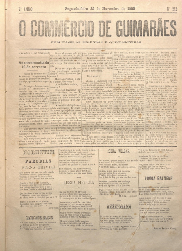 Comércio de Guimarães, nº 512, de 21/11/1889