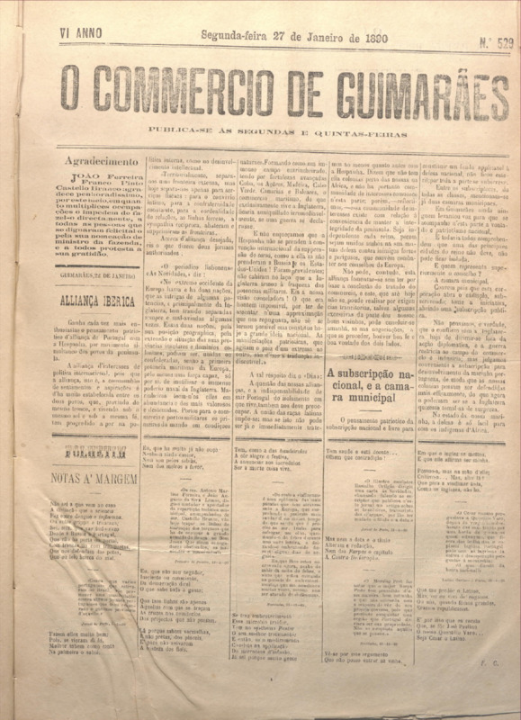 Comércio de Guimarães, nº 529, de 27/01/1890