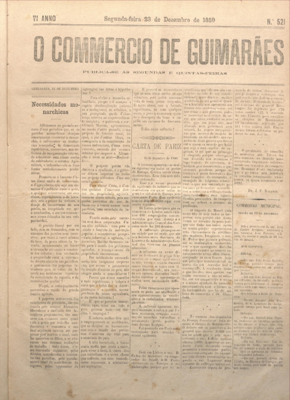 Comércio de Guimarães, nº 521, de 23/12/1889