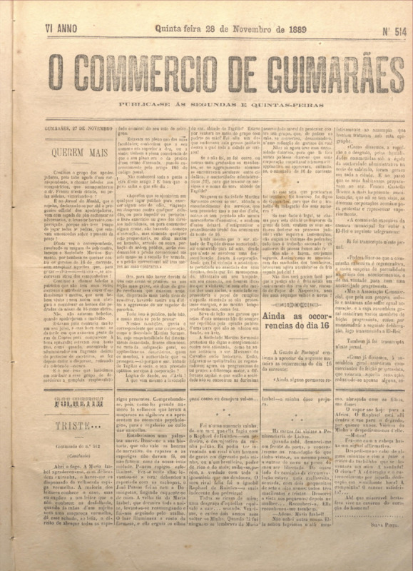 Comércio de Guimarães, nº 514, de 28/11/1889