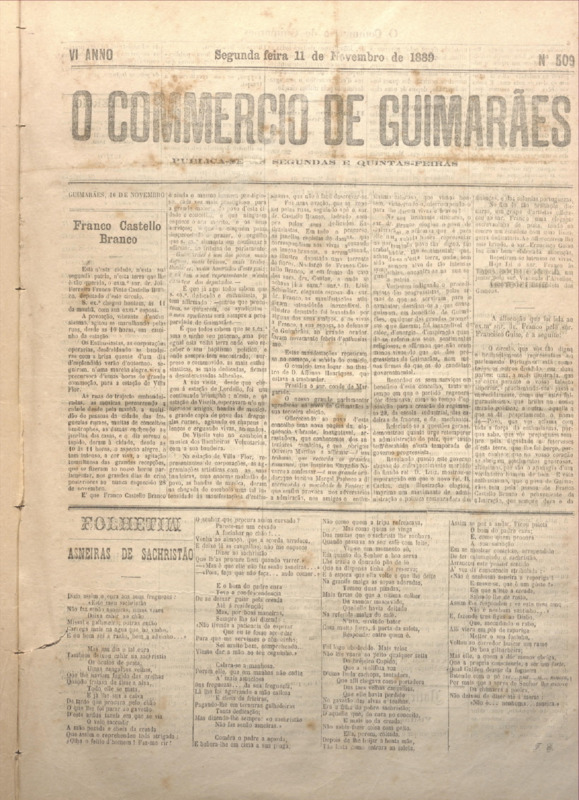 Comércio de Guimarães, nº 509, de 11/11/1889