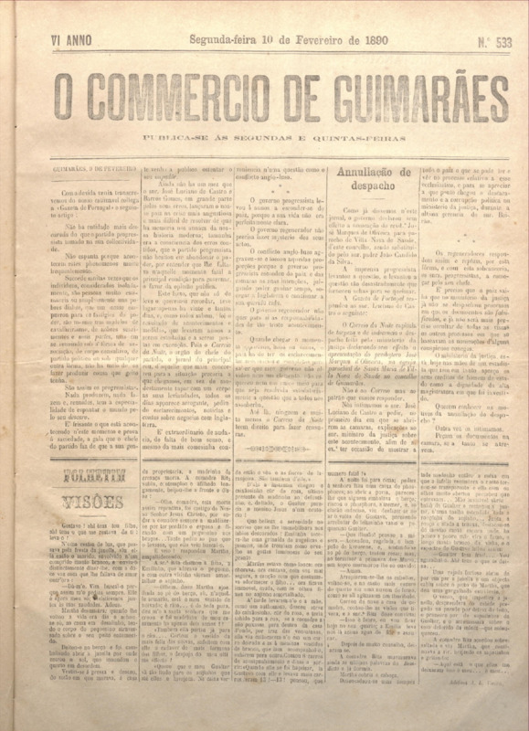 Comércio de Guimarães, nº 533, de 10/02/1890