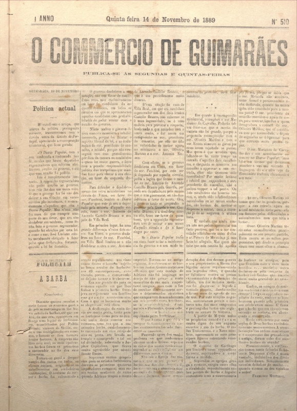 Comércio de Guimarães, nº 510, de 14/11/1889