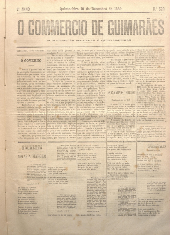 Comércio de Guimarães, nº 520, de 19/12/1889