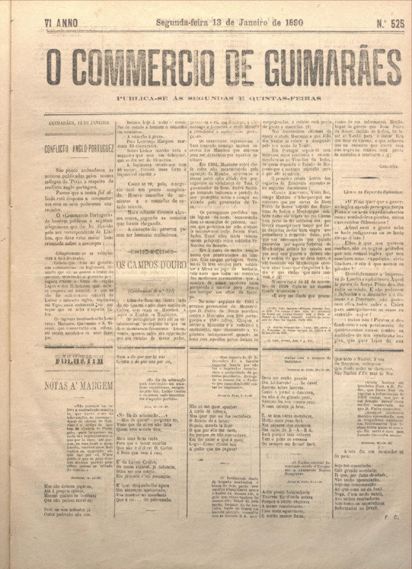 Comércio de Guimarães, nº 525, de 13/01/1890