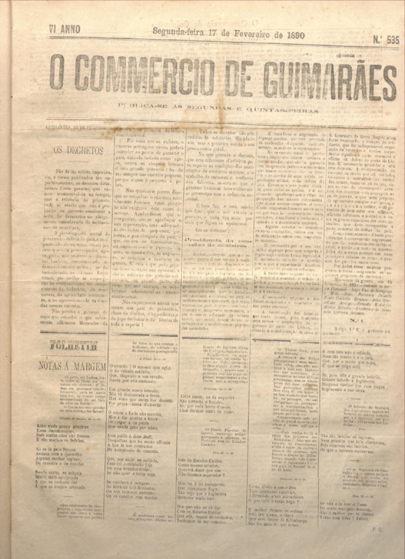 Comércio de Guimarães, nº 535, de 17/02/1890