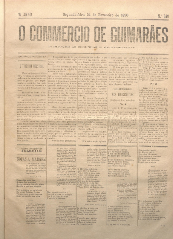 Comércio de Guimarães, nº 536, de 24/02/1890