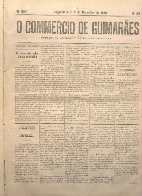 Comércio de Guimarães, nº 515, de 02/12/1889