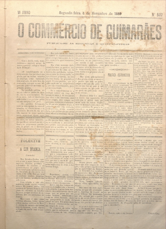 Comércio de Guimarães, nº 507, de 04/11/1889