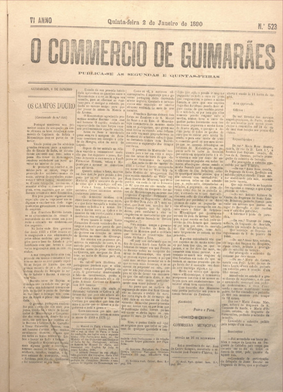 Comércio de Guimarães, nº 523, de 02/01/1890