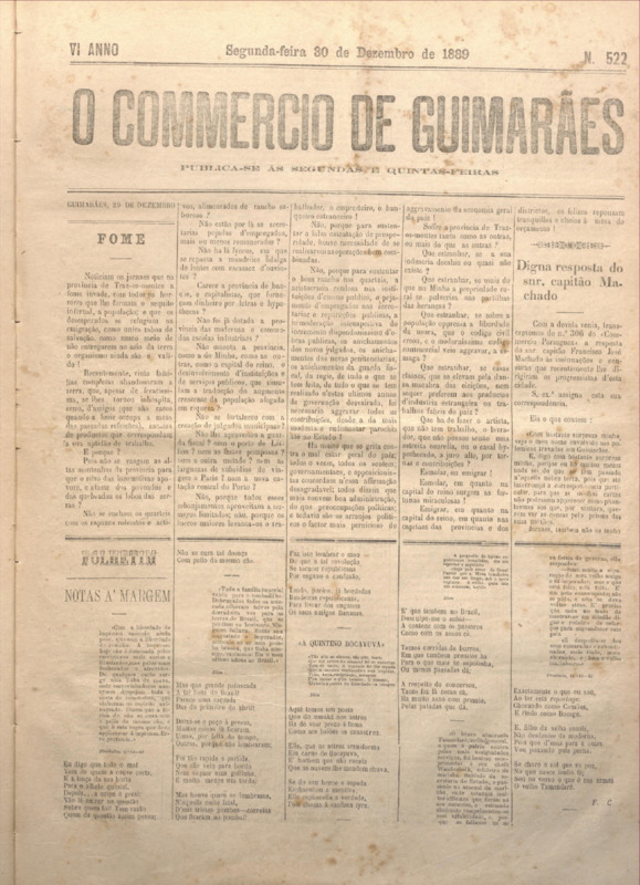 Comércio de Guimarães, nº 522, de 30/12/1889