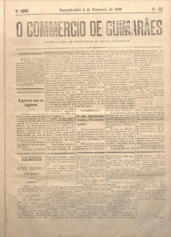 Comércio de Guimarães, nº 531, de 03/02/1890