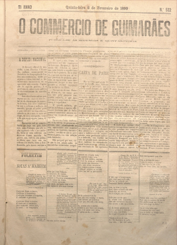 Comércio de Guimarães, nº 532, de 06/02/1890
