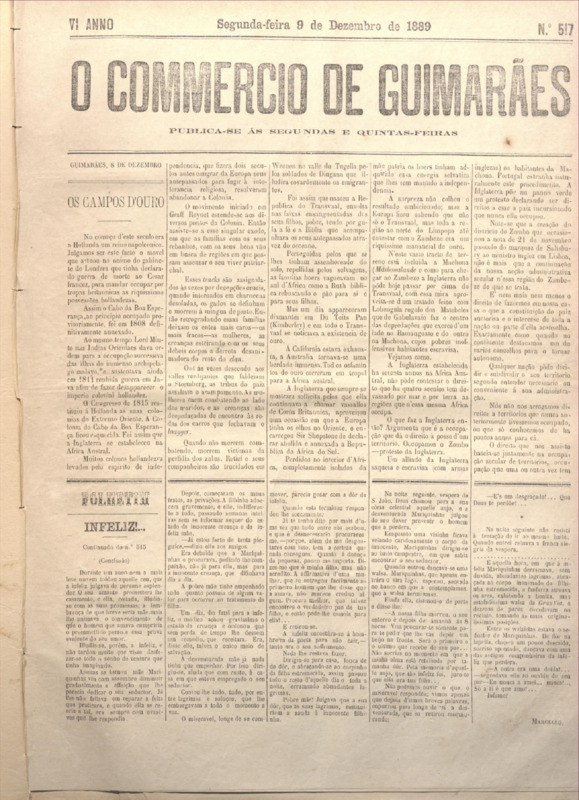Comércio de Guimarães, nº 517, de 09/12/1889
