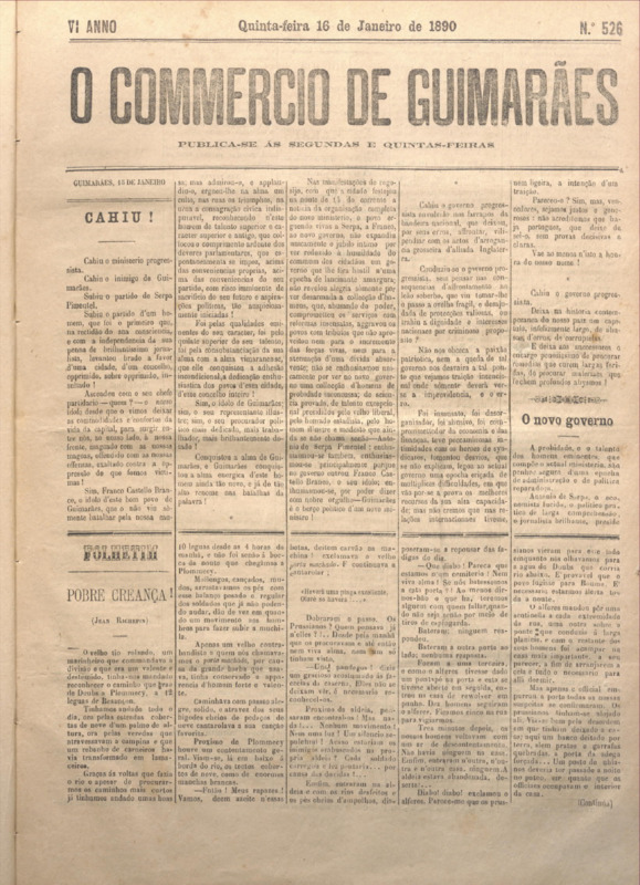 Comércio de Guimarães, nº 526, de 16/01/1890