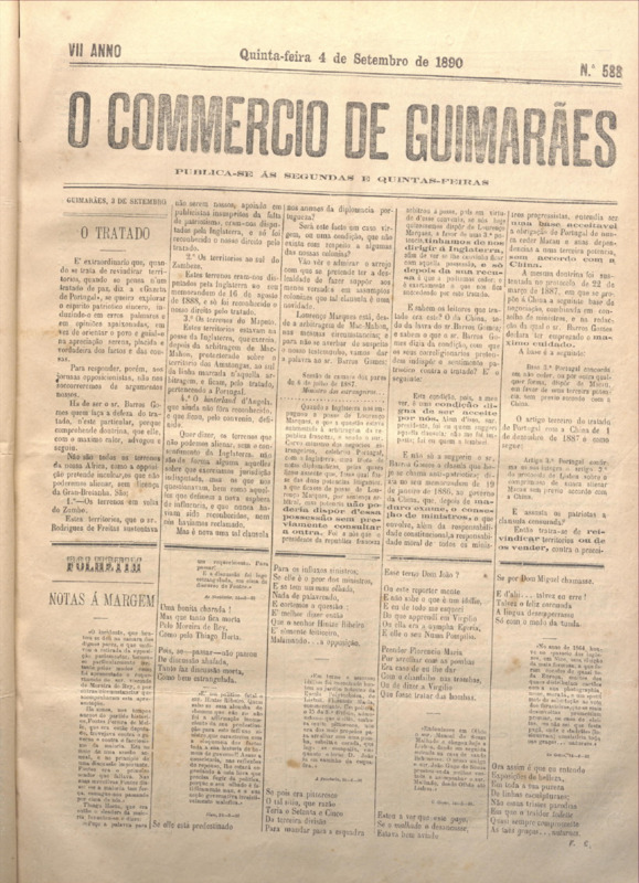Comércio de Guimarães, nº 588, de 04/09/1890