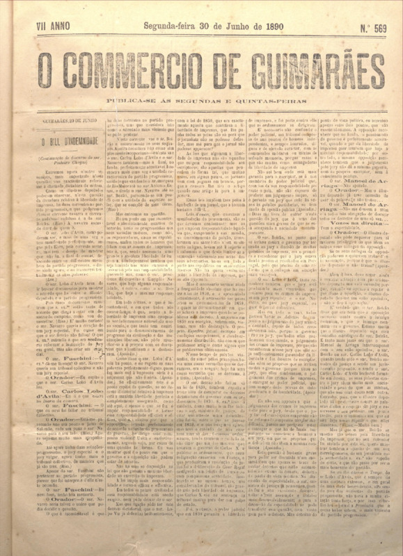 Comércio de Guimarães, nº 569, de 30/06/1890