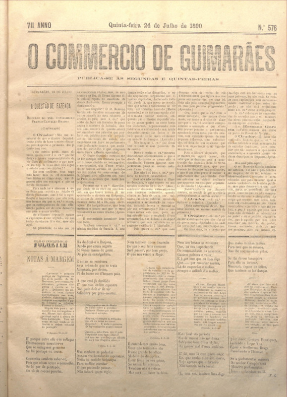Comércio de Guimarães, nº 576, de 24/07/1890