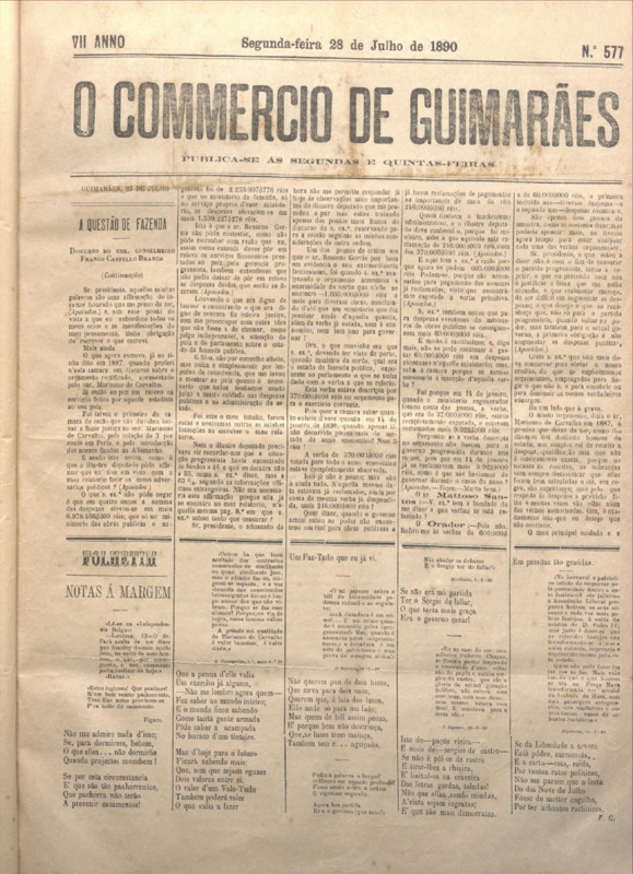Comércio de Guimarães, nº 577, de 28/07/1890