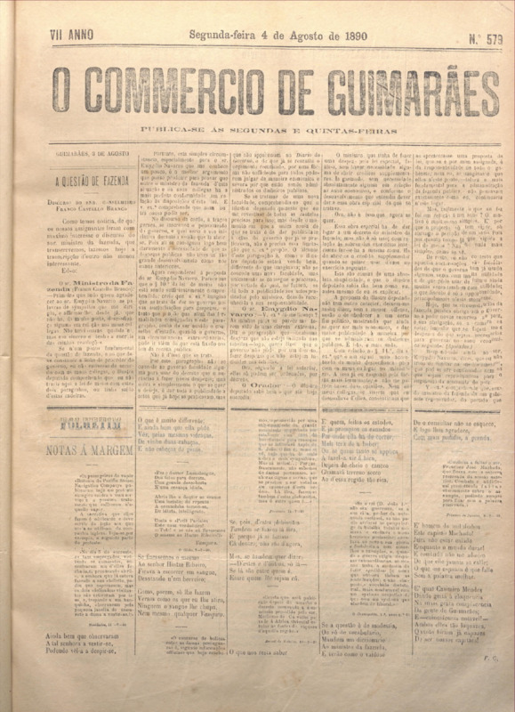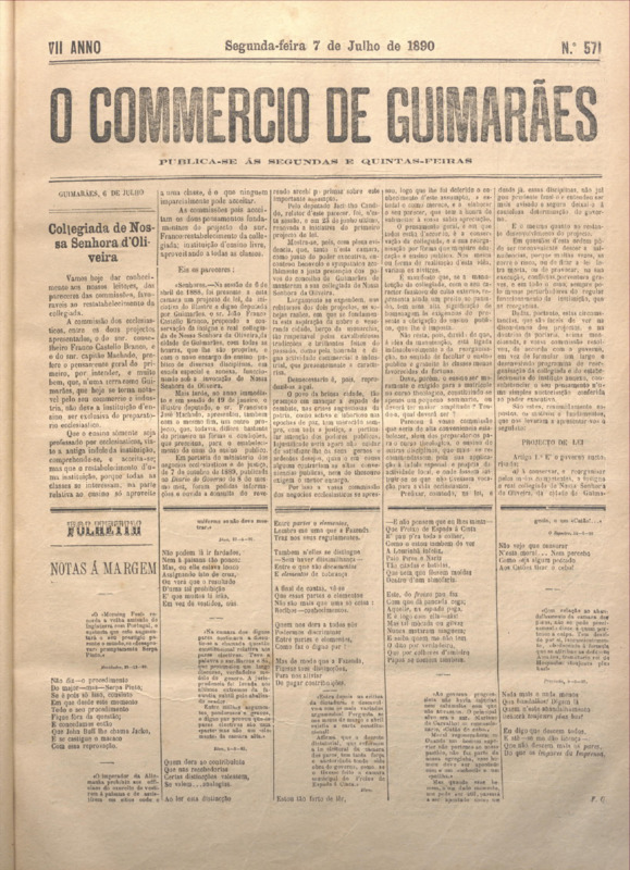 Comércio de Guimarães, nº 571, de 07/07/1890
