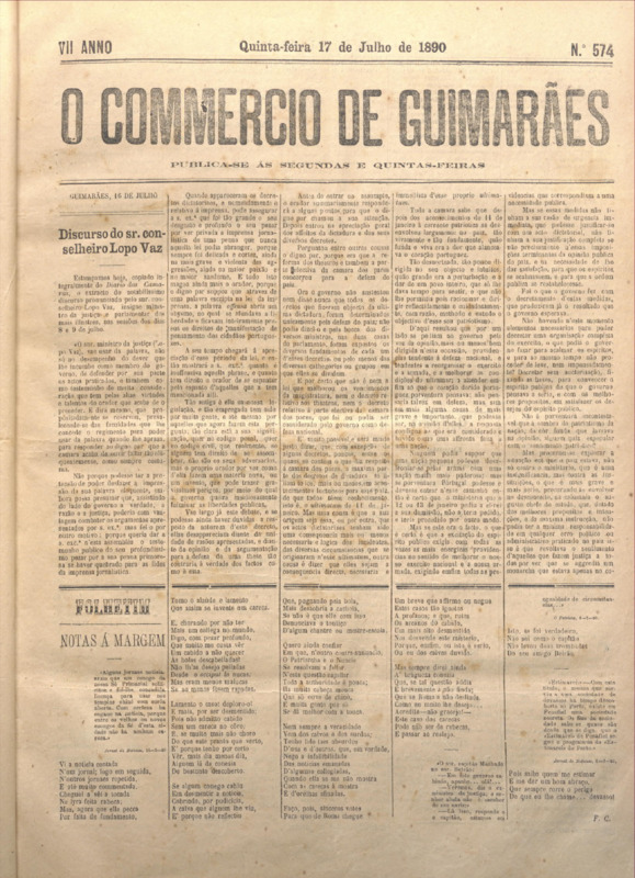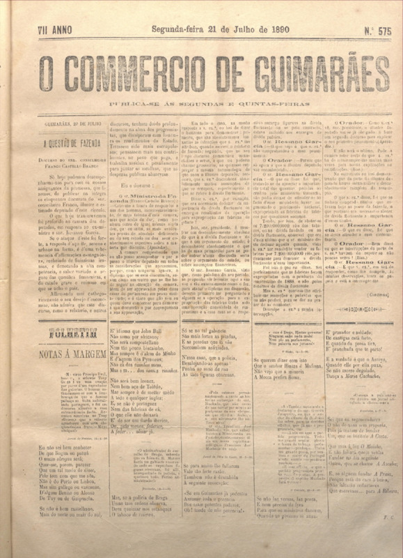 Comércio de Guimarães, nº 575, de 21/07/1890