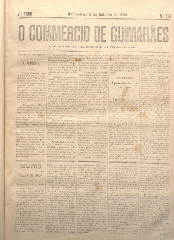 Comércio de Guimarães, nº 596, de 02/10/1890