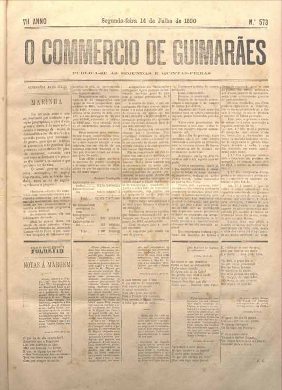 Comércio de Guimarães, nº 573, de 14/07/1890