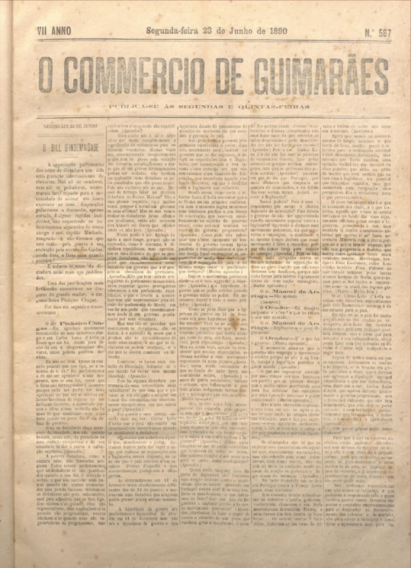 Comércio de Guimarães, nº 567, de 23/06/1890