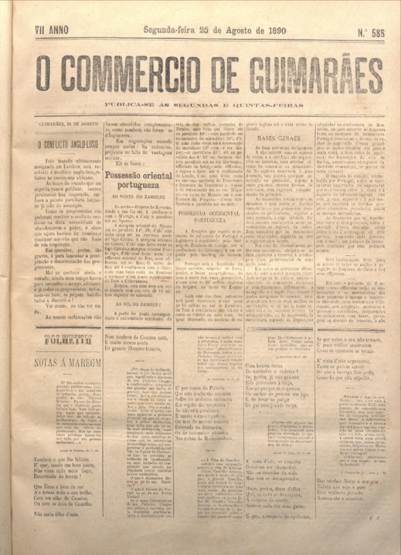 Comércio de Guimarães, nº 585, de 25/08/1890
