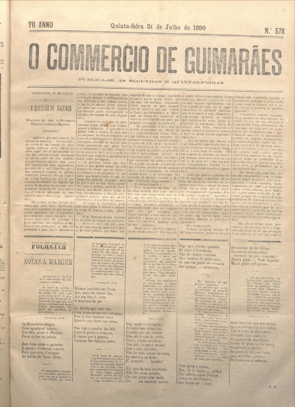 Comércio de Guimarães, nº 578, de 31/07/1890