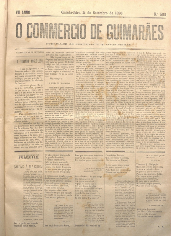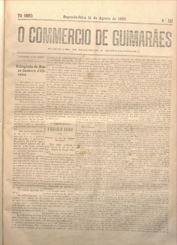 Comércio de Guimarães, nº 581, de 11/08/1890