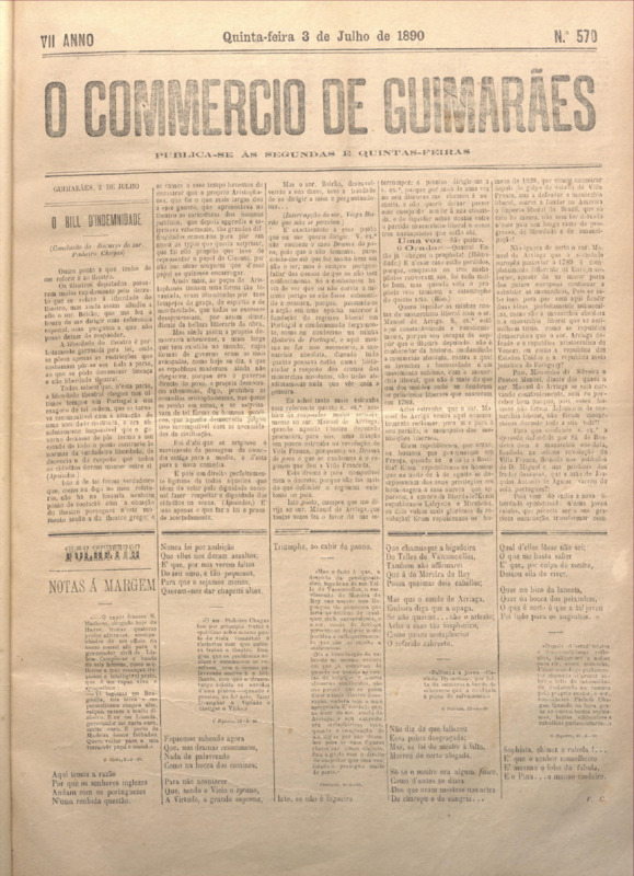 Comércio de Guimarães, nº 570, de 03/07/1890