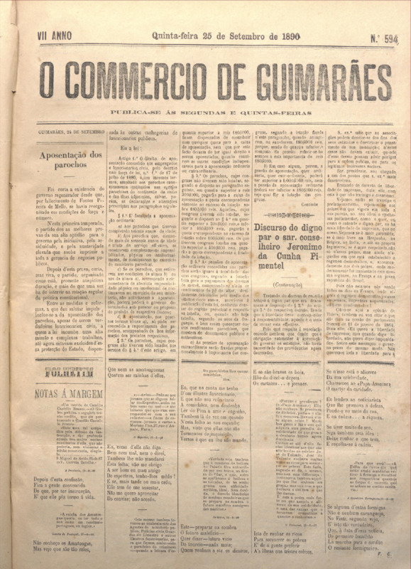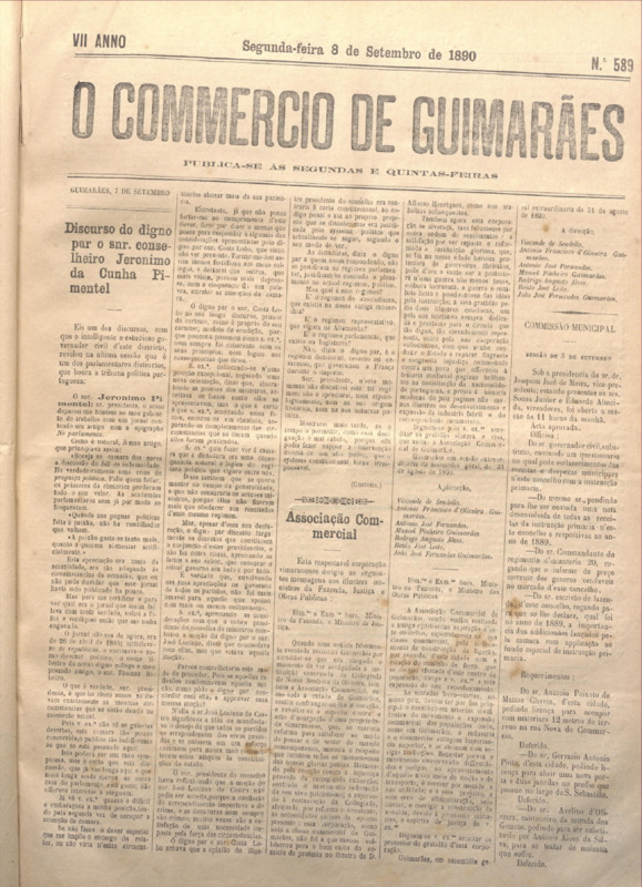 Comércio de Guimarães, nº 589, de 08/09/1890